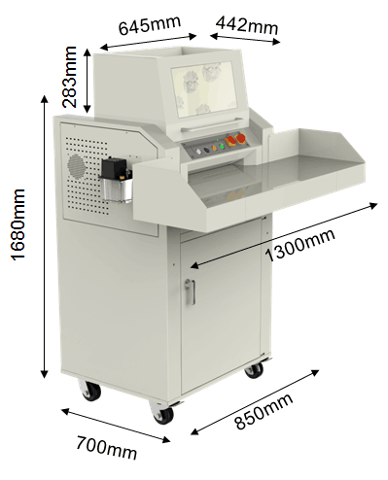 碎紙效果:5.8*50mm段狀 碎紙量:100-130張/次 功率:4KW 24h連續(xù)工作 入紙寬度:460mm 碎紙速度:9m/min 電壓:380V,50HZ 垃圾桶容積:300L 凈重:450KG 尺寸:1290mm*1300mm*1680mm | ![]() |