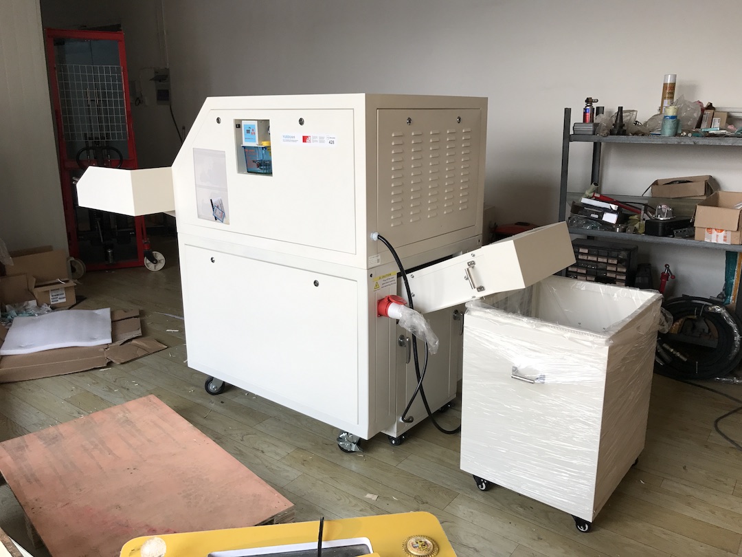 蘋果公司包材供應(yīng)商――蘇州工業(yè)園區(qū)明揚(yáng)彩色包裝印刷有限公司 蘇州工廠采購越都輸送帶式大型碎紙機(jī)產(chǎn)品用于粉碎蘋果手機(jī)包裝余料產(chǎn)品