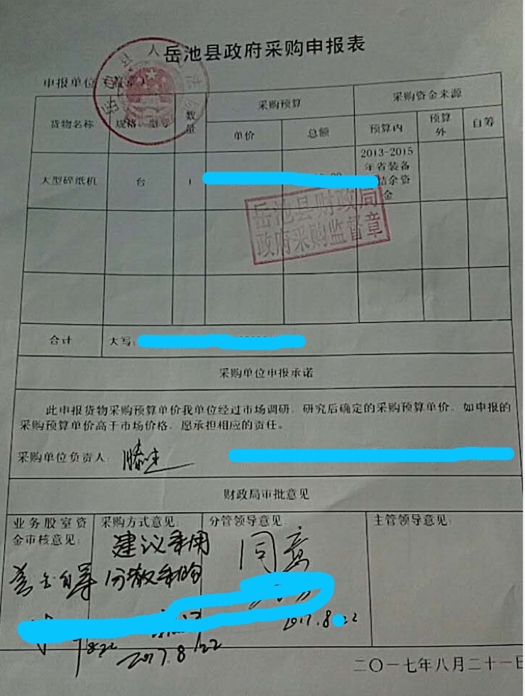 四川省岳池縣人民法院 岳池縣政府大型碎紙機(jī)采購申報(bào)表