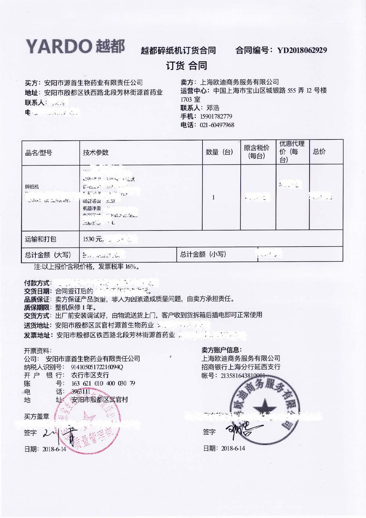熱烈祝賀(/鞭炮/鞭炮/鞭炮):河南省安陽市源首生物藥業(yè)有限責(zé)任公司與越都碎紙機上??偛窟\營中心簽署越都制藥廠專用碎紙機采購協(xié)議!(/燈籠/燈籠/燈籠/紅包/紅包/紅包)