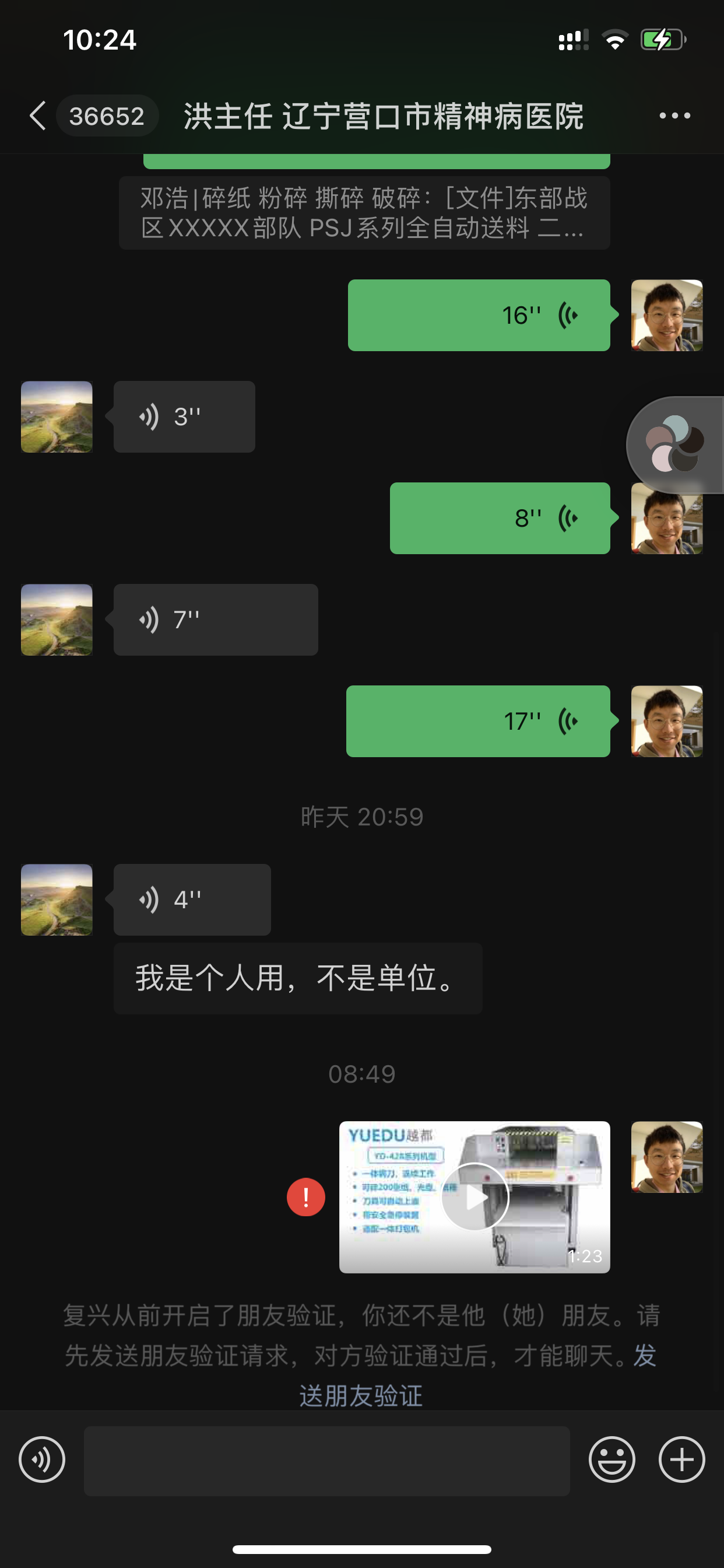 #銷售中遇到的趣事兒# 電話 13941721233. 百度上可以搜索到: 洪主任 遼寧營口市精神病醫(yī)院,他昨晚TB找過來,前后咨詢解答了32分鐘,發(fā)了很多資料并推薦了hsm同行,然后早上準(zhǔn)備補充他昨晚要的視頻,才知把我拉黑了。早上知道后感覺很傷心:付出了很多時間和精力,他很輕松的不做解釋 不考慮禮儀和道德,把你拉黑。從個人經(jīng)驗的統(tǒng)計來看,晚上來咨詢的,第一種是個體老板太忙晚上電話確定購買,第二種是公司采購商量回扣。關(guān)于第一種咨詢:我附上另外一張圖,昨天5-6點,成交的個體老板,談完5.28直接轉(zhuǎn)款了。