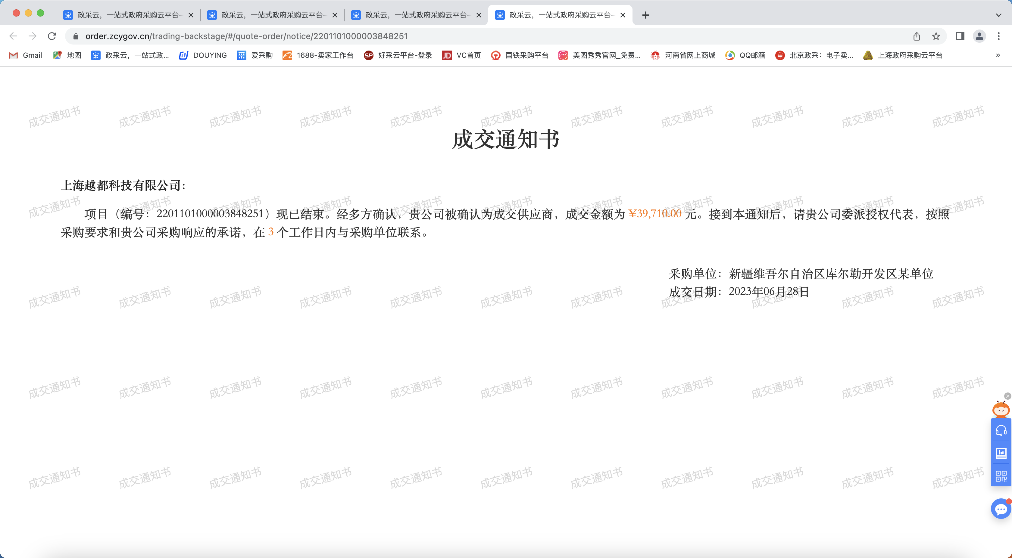 項(xiàng)目(編號:22010100003848251) 現(xiàn)已結(jié)束。經(jīng)多方確認(rèn),貴公司被確認(rèn)為成本供應(yīng)商、成交全額,到本通知后,請費(fèi)公司委派授權(quán)代表、按照