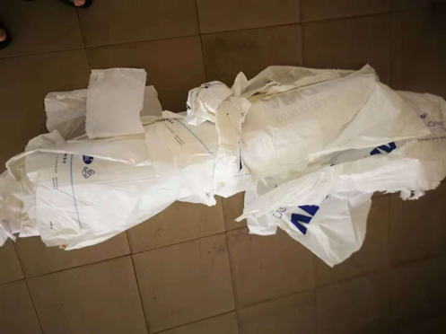 海南??谝瑯浼瘓F(tuán)采購(gòu)越都科技纖維切斷機(jī)用于粉碎裝椰肉帶塑料的紙袋子粉碎切斷機(jī) 粉碎的袋子樣品2