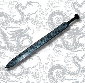出土的越王勾踐劍,全長(zhǎng)為55.6厘米,其中劍身長(zhǎng)45.6厘米,劍寬5厘米。劍身滿飾黑色菱形幾何暗花紋,劍格正面和反面還分別用藍(lán)色琉璃和綠松石鑲嵌成美麗的紋飾,劍柄以絲線纏縛,劍首向外形翻卷作圓箍,內(nèi)鑄有極其精細(xì)的11道同心圓圈,埋藏2000多年,依然鋒利無(wú)比,劍身一面近格處刻有兩行鳥(niǎo)篆銘文“越王勾踐,自作用劍”。 越王勾踐跟吳王夫差對(duì)戰(zhàn),夫差為報(bào)仇雪恨,養(yǎng)精蓄銳,誓取越國(guó)。越國(guó)大夫范蠡勸告勾踐切莫跟夫差火并,不為接受。勾踐跟夫差對(duì)壘,夫差節(jié)節(jié)勝利,勾踐及其五千殘兵被圍困會(huì)稽。